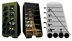![]() 類似破城者攻城塔的重建圖,顯示投石機、樓梯和一些構造。 | |