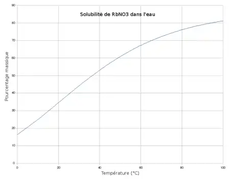 硝酸銣是一種白色結晶性粉末,極易溶於水和極微溶於丙酮。硝酸銣的焰色為紫紅色/淺紫色。