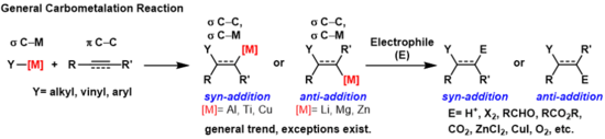碳鋰化是在碳-碳pi鍵上添加有機鋰試劑。用於該轉化的有機鋰試劑可以是商用的(例如正丁基鋰),也可以通過去質子化或鹵化鋰交換生成[3][4]。碳鋰化的分子間的和分子內的例子都存在,可被用於合成以產生復雜性。