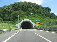 ※會津若松交流道以西隧道是暫定2車線無分隔雙向車道,上下線共用隧道[lower-alpha 6]。