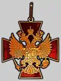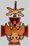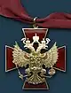 • 十字:十字正面镶有俄罗斯双头鹰国徽的图样。背面正中是圆形框,刻有“利益、荣誉和光荣”("ПОЛЬЗА, ЧЕСТЬ И СЛАВА")字样。中央是其铸造年份1994年,下方依次为月桂枝和编号。一级勋章十字宽度为60毫米,配有100毫米宽的绶带;二级和三级的十字宽度为50毫米,二级绶带宽45毫米,二级绶带宽24毫米。四级十字宽40毫米,以耳座和小环固定在五角形板条上,板条由24毫米宽的绶带包裹。