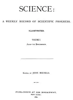 ![]() 《科学》最初系列(停刊于1882年) 第一卷的封面 | |