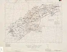 1908年的秦皇岛地图(註:本地圖在1908年出版,來自1908年GSGS版本的Kodaline空照圖,1927年增修鐵路路線,1944年由美國陸軍指揮中心重製,刪除了英國式地圖網格,改採用世界地圖圓錐投影網格制定座標)