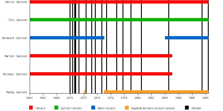 | 傑曼·傑克森 (Jermaine Jackson) | 1964–1975, 1984–1990 | 貝斯吉他,第二主唱 | 1975年退出之後與Hazel Gordy結婚 |