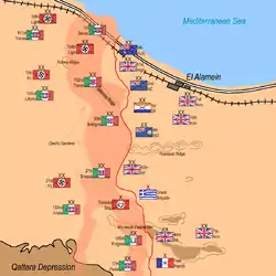 1942年7月德國將非洲軍、意大利与德国的步兵与机械化部队等單位組成非洲装甲军团,在埃尔温·隆美尔将军的率领下已经深入埃及,威胁着英联邦军队重要的跨苏伊士运河补给线。在己方的补给线拉得太长且缺乏支援,而盟军的大批援军即将到来的情况下,隆美尔决定主動向盟军发起进攻,尽管当时他的部队还没有集结完毕。1942年8月30日,进攻阿拉姆·哈勒法的德军被擊败,于是非洲军团开始准备迎击蒙哥马利派来反击的部队。经过6个多星期的集结后,英軍第8軍团已经作好了出击的准备。蒙哥马利指挥220,000人和1,100辆戰車去攻击非洲军团的116,000人和五百餘辆戰車。