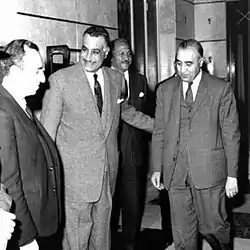 复兴党人与纳赛尔主义者的关系跌至了最低点。按照纳赛尔的说法,复兴党在伊拉克和叙利亚的掌权将他置于“锤子与铁砧之间”,伊叙结盟会削弱他作为反阿拉伯领袖的影响力。[33]纳赛尔开始发起对复兴党的口诛笔伐;阿弗拉克被嘲讽为一位傀儡“罗马皇帝”、一个科普特基督教徒,而他作为理论家做出的贡献则被斥为一无是处。[34]作为反击,阿弗拉克在一些复兴党会议上表现出完全的愤怒,他成了一位反纳赛尔主义者。由于他的反纳赛尔立场,他与比塔尔闹翻了,因为后者依然相信有机会可以与纳赛尔搞好关系。[35]