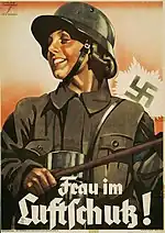 納粹德國的女性受到納粹主義教條的影響。納粹黨鼓勵女性遠離政治,並不允許女性在納粹黨的執行機構擔任職務[1][2]。但這並不影響女性成為納粹黨員。事實上納粹主義的女性政策不是簡單的壓抑女性地位,而是更大的偏向約束女人留在民生與教育領域,鼓勵女性限制在家庭之內,負責相夫教子等工作,和魏瑪共和國形成鮮明對比,並鼓勵女性生育[3]。然而隨著戰爭的進展,一些對女性職位的限制在後來解除,女性幹部回到崗位。