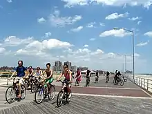 双层巴士和游轮将游客接载到曼哈顿及其他行政区,还有更具个性化的三轮车和马车服务。喜欢冒险的游客可在临近的商品租用自行车,或干脆在哈德逊河堤林荫道上散步,这往往是避开拥挤繁忙的商业区,静下心来欣赏街头生活最为有效的途径。