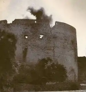 ![]() 尼兹瓦要塞被英国空军轰炸后冒出浓烟 | |||||||