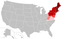 雖然名為「美國北部英語」,但並非美國北部各地都使用此方言,例如目前的西北部[註 2]、紐約市、東新英格蘭以及部分上中西部的方言,或者不符美國北部英語的音系特徵,或者只是擦邊球。同時,加拿大中部與西部使用的標準加拿大英語大概在兩到三個世紀前從美國北部英語分支出來,因此兩者間有些特徵是類似的[4][5]。