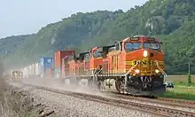 目前,增长最快的铁路货物量来自联运(intermodal)。联运是指通过铁路和另一种或多种运输方式——通常是卡车或远洋货船——接力运送集装箱或卡车挂车。联运将卡车的“门到门”的便捷和铁路的长途运输的经济性结合了起来。在过去的25年中,铁路联运货物量翻了3番。铁路在为零售商和其它客户大大提升物流效率方面扮演了关键角色。联运的高效性为美国在世界经济中提供了一个极具竞争力的优势。