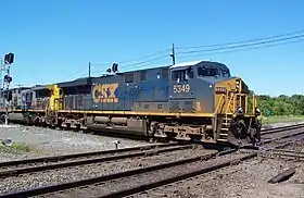 CSX的火车行驶在俄亥俄州马里昂的一个平面轨道交叉口。