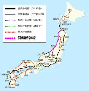 1970年,全国新干线铁道整备法颁布。根据这项法律,与目的为增强日益紧张的干线运输能力的东海道、山阳新干线不同,以经济发展和地区振兴为目的的新干线得以建设。