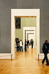 展厅位于第一层和第二层楼,其中主要是在第二层。房间有厅和间之分。厅内展出的主要是重要的或者大型的图画,而比较小的间内展出的则是比较小的和比较不重要的图画。第一层楼的房间有: