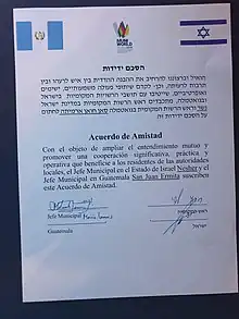 內舍爾市長羅伊·利維 (Roy Levy) 與危地馬拉聖胡安·阿米塔市長馬裡奧·奧蘭多·萊莫斯·馬丁內斯 (Mario Orlando Lemos Martinez)