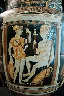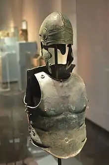 從意大利普利亞大區出土的花瓶,其中一名男性被描畫成穿著肌肉胸甲[1]
