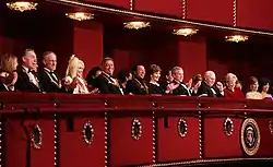 布什总统、第一夫人劳拉·布什、副总统迪克·切尼、夫人琳·切尼出席了2006年肯尼迪中心荣誉奖颁奖典礼。左起为2006年获奖者安德鲁·劳埃德·韦伯斯蒂芬·斯皮尔伯格多莉·帕顿祖宾·梅塔史摩基·罗宾逊