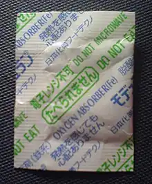 脫氧劑[1](oxygen absorber)又称除氧剂[2](oxygen scavenger)、去氧劑[3],一般放置在多孔小袋中,多孔小袋再被放置入密閉的商品包装中[4],這樣可以減少包装內的氧气含量,並延长商品的保质期[5]。