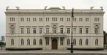 原本的舊司令部建筑为巴洛克式风格,由建筑师约翰·格雷戈尔·梅姆哈德特(1607-1678)建造,1795年扩建,1873年再次改建为新文艺复兴风格。建筑在二战中受损严重,拆除后兴建了东德外交部大楼。1995年,东德外交部大楼拆除,用于重建Werderscher市场区。
