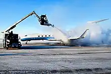在冰凍天氣中使用的除冰液會因為其灑落地面,地表徑流會將它們帶到附近的溪流、河流或沿海水域而造成水污染。[52]:101除冰液的基底是乙二醇或丙二醇。[52]:4機場在跑道和滑行道等鋪砌路面上施用除冰液,其中會含有醋酸鉀、乙二醇化合物、乙酸鈉、尿素或其他化學物質。[52]:42乙二醇和丙二醇在地表水的降解過程中,會產生高水準的生化需氧量,把水生生物所需的氧氣消耗。分解丙二醇的微生物種群會消耗水流層中的大量溶解氧 。[53]:2–23而魚類、無脊椎動物和其他水生生物需要地表水中有足夠的溶解氧才能存活。如果生物不能遷移到氧氣水準充足的區域,就會死亡。低溶解氧水準,群落中物種受到改變(即關鍵食物網相互作用被改變)會把底棲攝食者的種群數目減少,甚至是消除。[53]:2–30