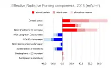 IPCC在1992年估計飛機所產生的輻射強迫佔人為輻射強迫總量的3.5%。.[29]