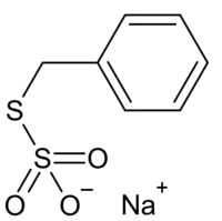 苄基硫代硫酸钠是一种有机化合物,化学式为C6H5CH2S2O3Na。它可由溴化苄和硫代硫酸钠在甲醇水溶液中反应得到。[1]它和苯胺在二甲基亚砜中反应,可以得到N-苯基硫代苯甲酰胺,[2]也有文献报道该反应可以得到二苄基二硫醚。[3]