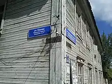 在萨兰斯克使用俄语、莫克沙语和埃尔齐亚语的三语街道标识牌