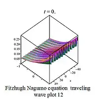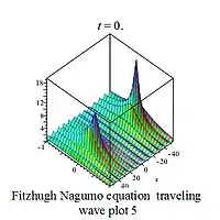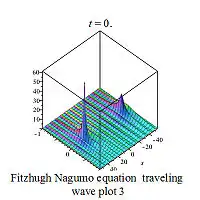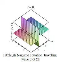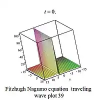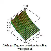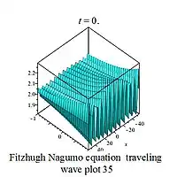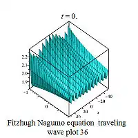 菲茨休-南云方程(Fitzhugh-Nagumo equation)是一个非线性偏微分方程,最早由理查德·菲茨休(Richard FitzHugh)于1961年提出[1],描述了在高于阈值的常电流刺激下神经元动作电位的周期性振荡[2]。当时菲茨休将其称为“朋霍费尔-范德波尔模型(Bonhoeffer-van der Pol model)”。次年,南云仁一等人也提出了一个与该方程等效的电路[3]。该方程为霍奇金-赫胥黎模型的二维情形[4];后者因揭示了枪乌贼巨大轴突中动作电位的产生和传导机制而分享了1963年的诺贝尔生理学或医学奖。