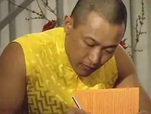 他是其木克坡家族──格萨王之后代──家族传承的法嗣。贝诺法王在1995年为他升座为「萨姜」,意为「大地护佑者」,并也是当今香巴拉佛教世界(Shambhala Buddhism)的总领袖。他曾和多位当代卓著的佛教大师学法,如他的父亲,邱阳创巴仁波切,及顶果钦哲法王、贝诺法王等。