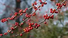 - Ilex decidua 'Council Fire'- 於冬天持續長有橙紅色核果。[3]