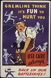 二戰時期,葛雷姆林傳說在英國皇家空軍部隊廣為流傳。機組人員將不明原因引發的飛機故障歸咎於葛雷姆林的搗亂,認為牠們的真面目是敵軍的奸細。然而經調查得知,敵軍陣營也常發生類似的不明機械故障。是此,葛雷姆林被認為是一中立的,純粹為搗亂而作惡的妖精。民俗學家約翰·W·海森與歷史學家馬林·布雷西(Marlin Bressi)認為,葛雷姆林傳說表面上是責任推卸,但是透過將人為意外怪罪給虛構的葛雷姆林,飛行員與機組人員之間的矛盾得以化解,進一步提升士氣,並間接促成英國空軍在不列顛戰役的勝利。[3]