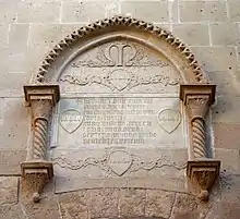 这座宫殿建于1397年,[1] 是为马西奥塔·梅尔古利斯建造。为了纪念这一点,立面上有以下铭文: