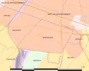 与蒙鲁日接壤的市镇(或旧市镇、城区)包括:巴黎、让蒂伊、阿尔克伊、巴涅、沙蒂永、马拉科夫[2]。