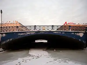 蓝桥得名于它的色彩。19世纪有一个传统,以颜色命名跨越莫伊卡河的桥梁。今天只有四座彩色的桥梁还存在,另外三座分别是红桥、绿桥和黄桥。其中三座还保持原名,只是黄桥已经更名为歌手桥。