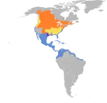 北美洲;冬季在美国南部至阿根廷中部越冬。[4]