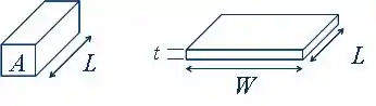 其中代表电阻率,代表截面面积而代表长度。截面面积可被分解为宽度和薄膜厚度。