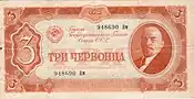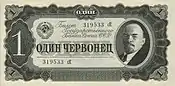 蘇聯的第一批紙幣是根據苏联中央执行委员会和苏联人民委员会在1923年11月23日[5]、12月18日[6] 和1924年2月7日[7]的決議發行的,發行了10000、15000和25000盧布面值的紙幣。 而第一項決議也曾設想發行100、250、500、1000和5000盧布面額的紙幣,但從未實施。