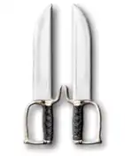 的基本手法与短刀的攻防特点组合而成,刀片的長大約是一個人的手臂,所以它可以很容易地套在