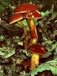 血色牛肝菌(學名:),俗稱紅寶石牛肝菌(),是一種擔子菌門真菌,隸屬於牛肝菌屬。這種真菌體形細小,顏色鮮豔,有著一個紅色的菌蓋和菌柄,以及黃色的氣孔。和許多牛肝菌一樣,這種真菌的菌肉在被切割或碰傷後是會變成藍色的。這種真菌通常於秋季在落葉林出現。雖然整體上這種真菌是可供食用的,但是其差劣的質量和像肥皂的味道令到可食性成疑。