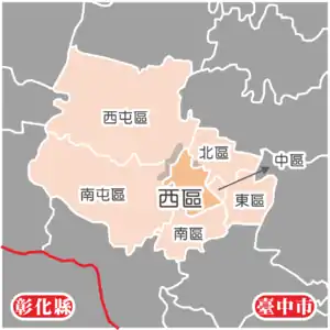 | 毗鄰 | 西屯區、南屯區、南區、中區、北區、東區 | |