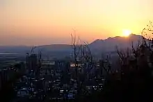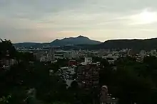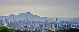 ![]() 由烘爐塞山所見的觀音山(圖中最高者),左側較矮的渾圓山頭為牛港稜山。 | |