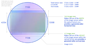 PureView Pro 传感器的成像圈16:9以及4:3的图像范围