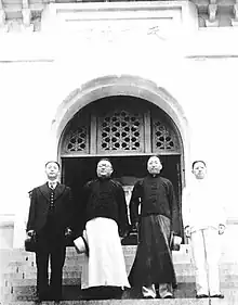 ![]() 1941年9月3日,四位汪精卫政权浙江省官员谒中山陵合影,谭为右一 | |
