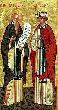 ![]() 聖像殘片:亞方索山的聖亞他那修,印度的貝爾拉姆,印度的約瑟伐特。 15世紀末-16世紀初畫,源自諾夫哥羅德聖索菲亞主教座堂 | |
