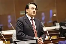 2023年8月9日,大选前两周,费尔南多在基多安德森学院举行的“建设运动”政治集会上发表讲话。[11]