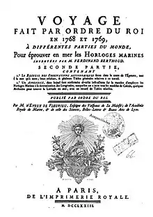 - 资料来源 : 费尔迪南·贝尔杜,经度航海表专论,包含相关机械的构造、描述及所有制造细节;其尺寸、测试方式,等等。巴黎 : Ph.-D.皮埃尔出版社,1792,第15页。