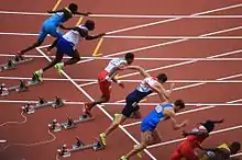 在田径短跑中,IAAF规定:若运动员在发令枪开枪后0.1秒内起步,则该运动员将被视为抢跑。[1]因为人从感受到声音信号到起步之间需要至少0.1秒。[2]此规定仅适用于能通过起跑器之内的运动传感器来测量起步的正规比赛中;而在业余比赛中,一般由裁判目视来判断是否抢跑。