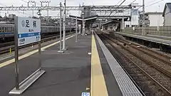 島式與側式結合的複合型月台2面3線的地面車站。下行線側起為1號~3號月台。