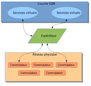 軟體定義網路(英語:,縮寫作 SDN)是一種新型网络架构。它利用OpenFlow協定将路由器的控制平面(control plane)從(data plane)中分離,改以方式實作,从而使得将分散在各个网络设备上的控制平面进行集中化管理成为可能 ,该架構可使網路管理員在不更動裝置的前提下,以中央控制方式用程序重新規劃網路,為控制網路流量提供了新方案,也为核心網路和應用創新提供了良好平台。SDN可以按使用领域分为:SD-WAN, SD-LAN, SD-DC, SDN将人工智能引入到网络系统里来,将是未来几年最热门的网络前沿技术之一。[1]