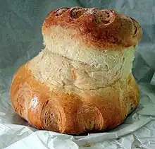 农家面包的外型具有一定特色。大体来说,农家面包是由两个圆形的面团拼合而成,上半部分的面团较小,下半部分的面团较大。这样的外形和法国的布莉歐以及菲尼斯泰尔省的帽子面包()较为相似[1]。